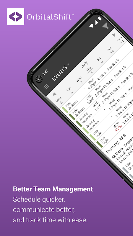 OrbitalShift's employee time tracking, shift scheduling, and work messaging software tools are simple to use and make managers' and staff lives easier. Verify time clock punches, meal or rest breaks, and schedule changes instantly from your smartphone or mobile device. Assign shifts and approve cover and time-off requests on the go. And, with customizable business settings, you can tune individual software features to align with your operations and HR policies no matter what size or industry you are in.