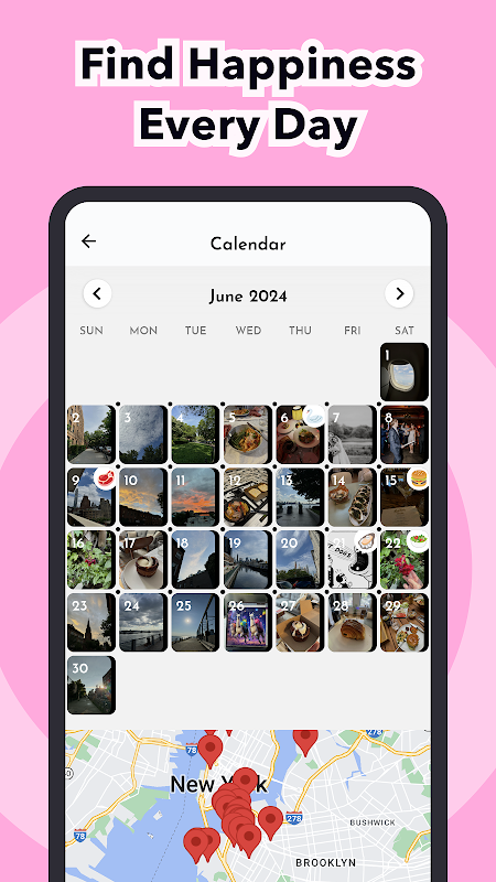After a couple of weeks, view past photo or video diary moments using the Gratitude Jar. Shake to see one random memory and feel happier in seconds instead of minutes of scrolling through a feed. Past happy moments may even prompt more gratitude!