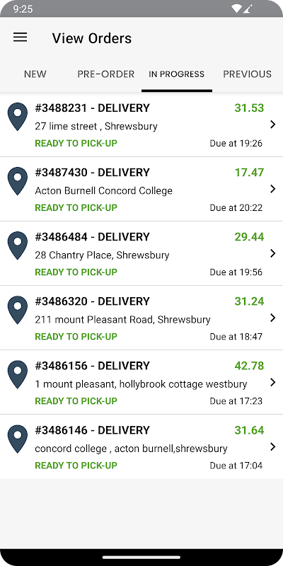 After clicking on the pending order, the app will display the customer details, delivery details and order item details.