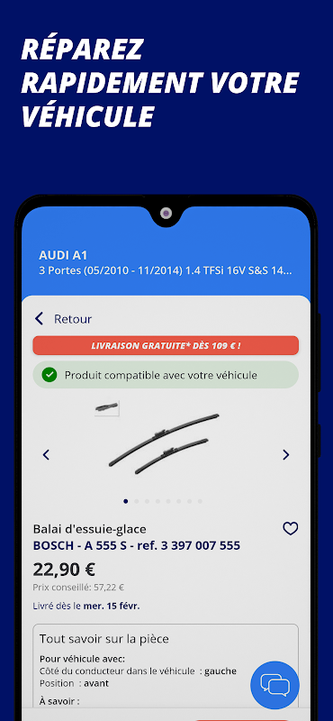 Because an outage never comes at the right time, the Oscaro app is there to help you when you need it. Intended to be easy to use and accessible to all, it includes the entire Oscaro catalog and direct access to advice from our mechanical experts.