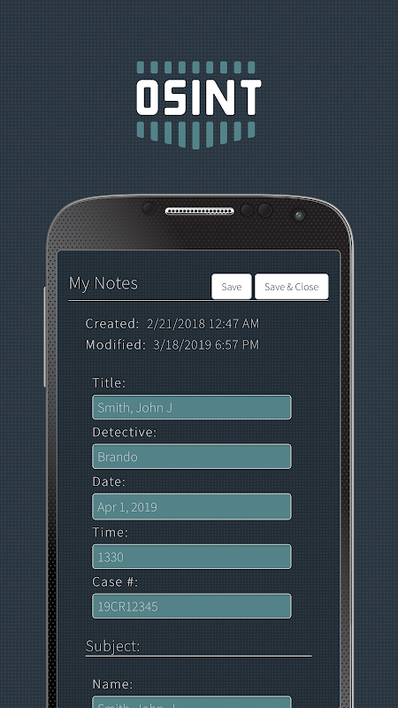 The app has a thorough “Notes” section in which you can track information relevant to multiple investigation at once. You can then share the information by emailing it to yourself or others. You can also easily copy the data to be pasted wherever you like. OSINT-D cannot see nor collect any information you enter.