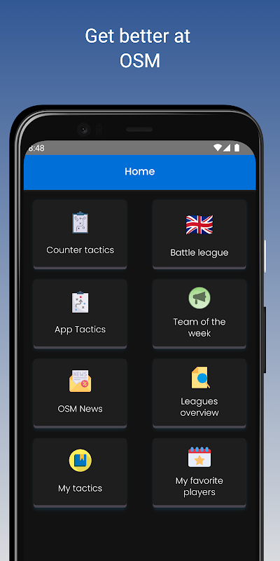Take your tactics to the next level OSM Tactics - The comprehensive mobile app for player scouting, tactics, counter-tactics, and league information!