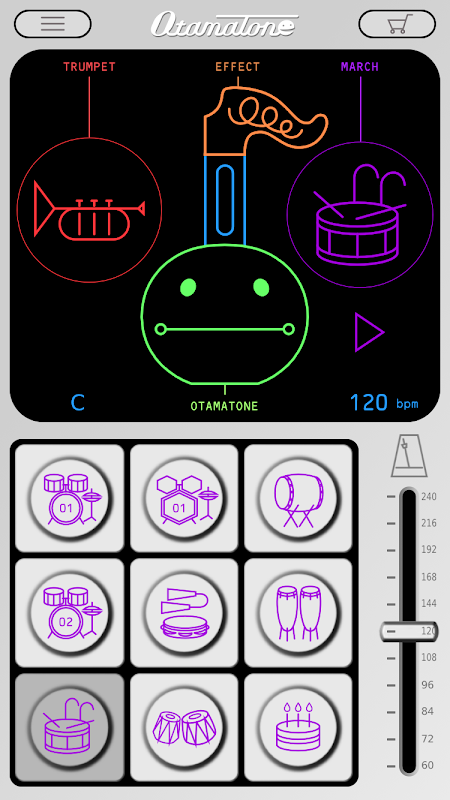 Connect your Otamatone Techno or Otamatone neo to a smartphone, start Otamatone Studio and play your Otamatone with the sound of various instruments or jam along to built-in rhythms.