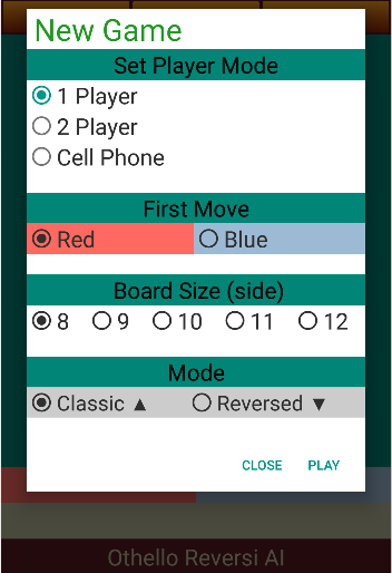 1.3. Select Board Size configured by size: Size could be from 8x8 to 12x12 board size.
