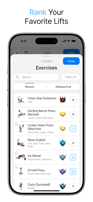 Logging workouts is effortless. Simply select an exercise from the comprehensive library or create a custom movement, enter weight, sets, and reps, and the app calculates your estimated one-rep max. That value is immediately run through our ranking algorithm to update your position. Over time, you’ll see your progress on intuitive charts that show strength gains, one-rep-max trends, and consistency in your favorite lifts. Each chart can be filtered by date range, exercise type, or body-weight category, so you know exactly how much you’ve improved and what still needs work.