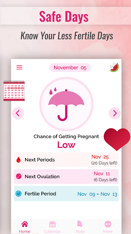 ★ Right after, you come to know about your chances of getting pregnant as this period calculator shows your next periods date, next ovulation date, Safe Days, and also about your fertile period