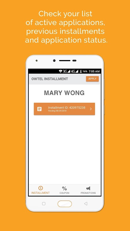 With OWTEL Installment app you can enjoy the following features: