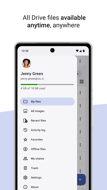 With this app you can access all your photos, files, documents and videos that are stored in OX Drive- at any time and from any Android device.