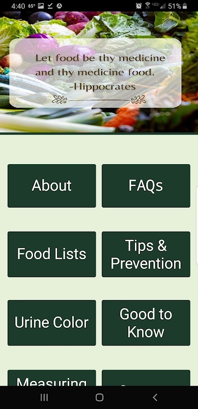 Overview:This easy to use app provides tips as well a quick lookup of food oxalate counts to aid individuals suffering from calcium oxalate kidney stones (nephrolithiasis) and hyperoxaluria or oxalosis who must restrict their oxalate intake. This app works offline and requires no internet connectivity once installed.