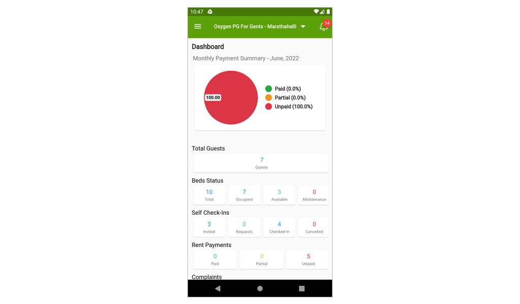 This app is useful to manage various PG related processes such as bed occupancy management, rent collection and tracking, guest complaint management, expense management, etc.
