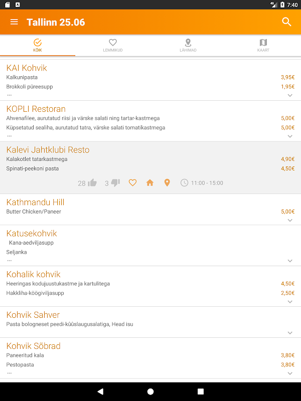 - Otsingu avamine valib automaatselt kõikide söögikohtade vahekaardi