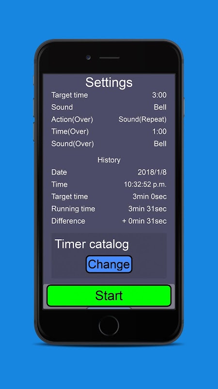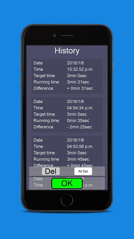 Time and the alalogue chronograph are displayed so that the remaining time can be recognized easily. Moreover, you can confirm when you executed and how long it had taken and completed by that history funcion later.