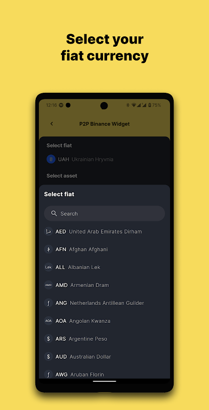 A configurable widget that shows you the list of the latest P2P advertisements from the Binance platform. You can add multiple configurations of the widget to your home screen. The widget allows you to filter advertisements by fiat, asset, trade type, transaction amount, and payment methods.