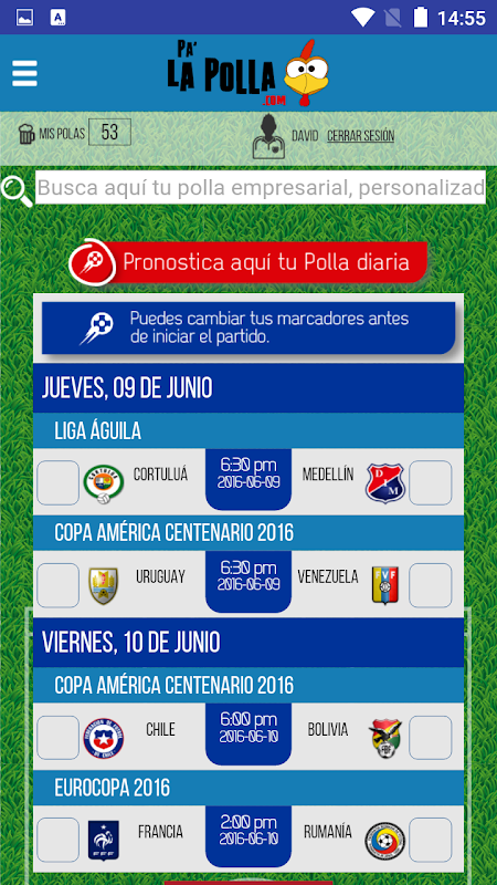 Pa' la polla te permite hacer pollas con tus amigos y compañeros de empresa. Crea una comunidad en donde la emoción del fútbol se vive de manera más cercana con la alegría que genera acertar el marcador. Invita a tus amigos, rétalos y gana premios de forma gratuita.