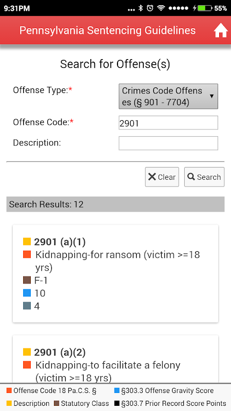 Pennsylvania Sentencing Guidelines app provides laws and codes in the palm of your hands. Very efficient, fast and easy to use software designed for law enforcement personnel, lawyers, paralegals, students, government officials or anyone who needs quick access.