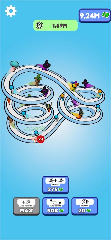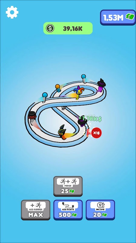 Your life as a merger is simple. Buy new runners, merge them to higher level runners, gain more money, buy longer and higher roads and repeat!