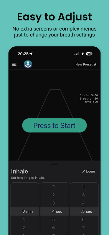 Control your breath timing with visual & audio cues for meditation and recovery