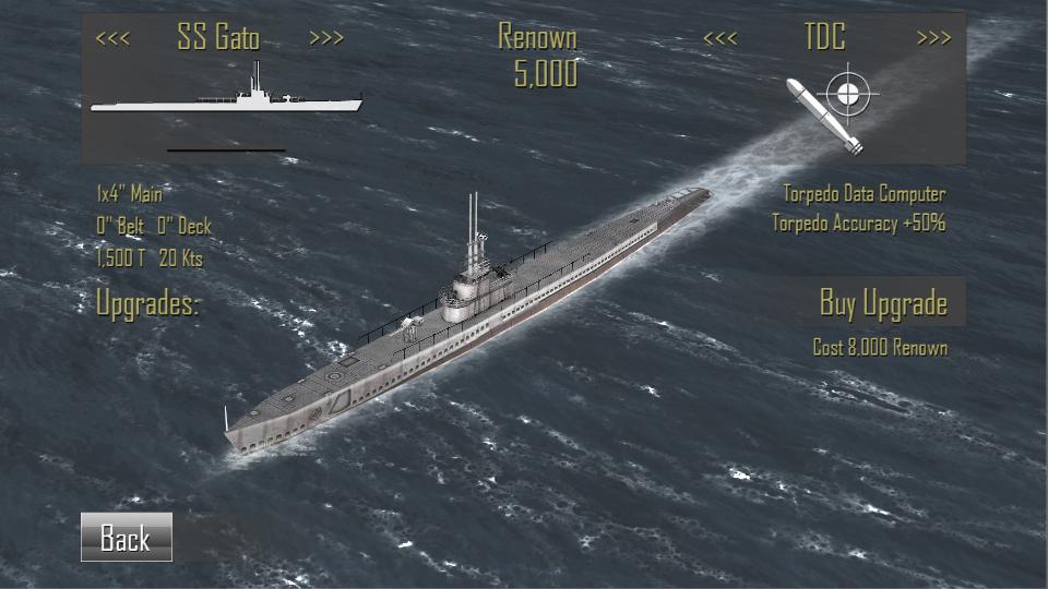 Sink enemy ships to earn renown and buy upgrades and better ships.