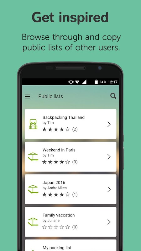 Create and manage packing lists for every kind of travel.