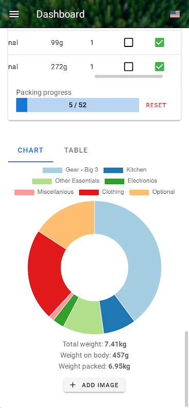 Create gear lists for backpacking and travel, optimize weights and share them.