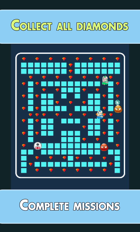 Earn high scores as you guide your Pacy Robot through the maze to collect all diamonds while avoiding Monsters! Gobble a Power up and slowdown Monsters.