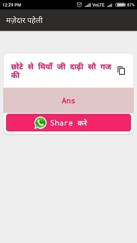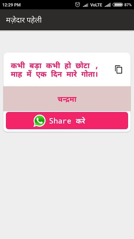 - Capability to share Paheli over social network or email or Whatsapp and telegram ,massenger