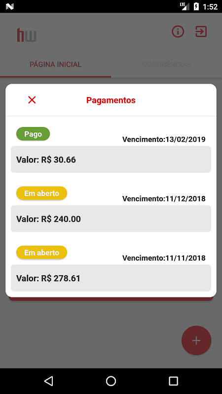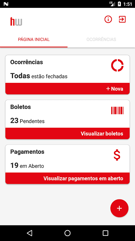 Make your registration in the app and access the main options of: Occurrences, Tickets and Payments.