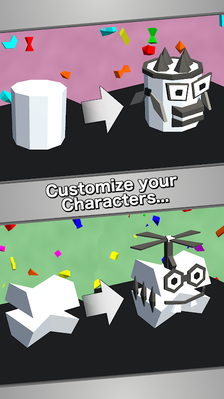 - Character Editor: Create your own Character. 10 different shapes are available and a lot of objects to create your personal character.