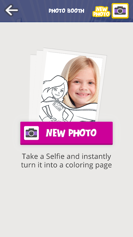 * Photo Booth – Take a Selfie with DC SUPER FRIENDS and turn it into a coloring page