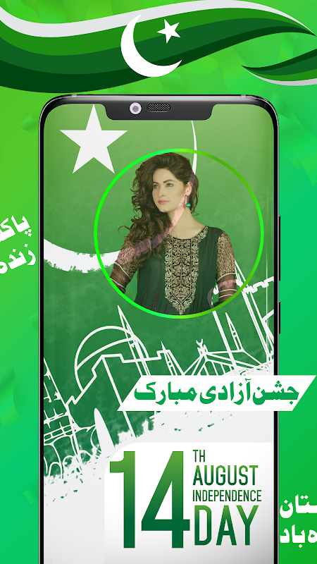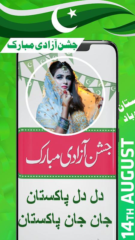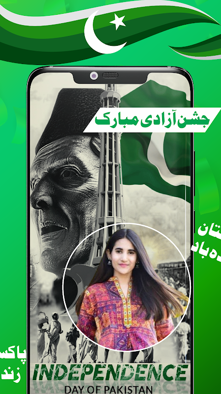 14 august 1947 was the day when Pakistan got its independence. Celebrate this year independence day with making beautiful photos using PAKISTAN PHOTO FRAME . This is not an ordinary photo editor because you can add your own photos to the photo frame editor containing amazing Pakistani celebrations slogans such as Pakistan defense day, JASHNE AZADI Mubarik ,Pakistan zindabad, Happy Independence day Pakistan, Jeeve Jeeve Pakistan, Pakistan ka matlab kia and many more.