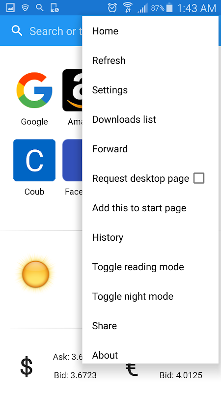 Learn more about today weather right from browser's homepage! Weather can be based on your location or from specific area.