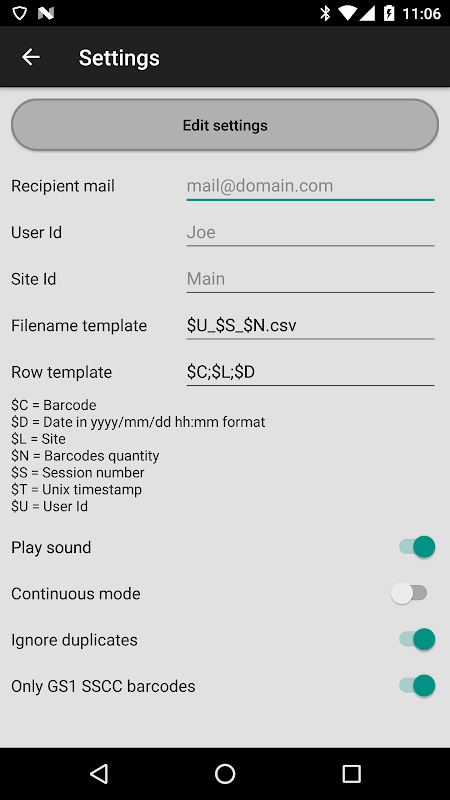 By scanning barcodes in the correct format only, the app quickly capture all pallets in the warehouse and share the result via a CSV file attached to an email.