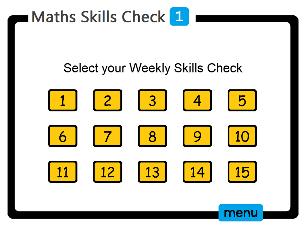 The approach that the teacher uses remains basically the same as you've been using with the paper version because it's the approach that makes it work. The pupils access their app...they go to weekly skills check one if it's week one; two if it’s week two etc. The pupils then see question one and they work out the answer and select from a multiple choice of up to five answers.
