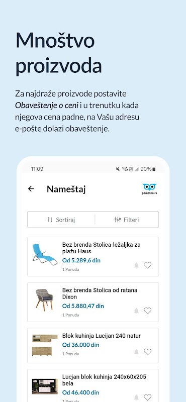 The Pametno.rs application is the fastest way to find the lowest prices for half a million products from over 100 online stores. Find the product, check the prices and choose the best offer for you.