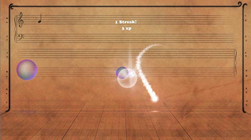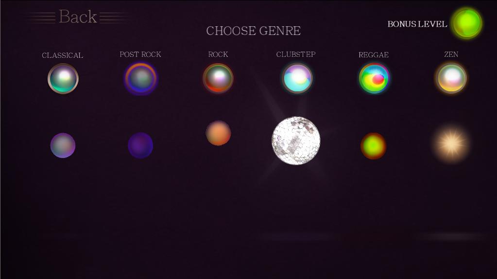 Work your way through 6 different genres. Playing as a music spirit, sent from the ancestors of an old musician, to help him regain his success. On your journey, you will level up, boost your spirit with attributes and unlock abilities to help you pop some enemies!