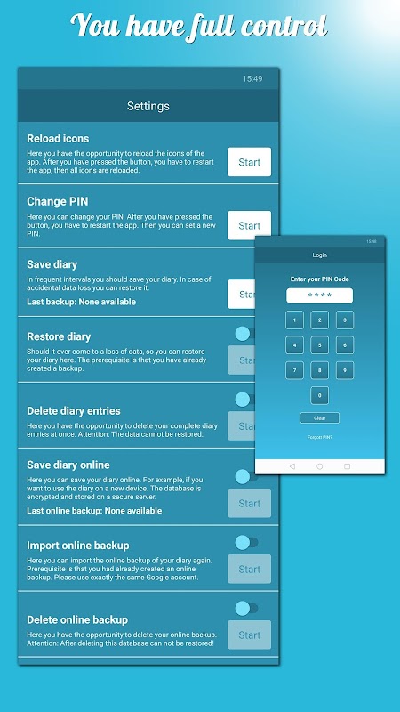 ★ Save your anxiety diary online in an encrypted format so you can transfer your diary to another device.