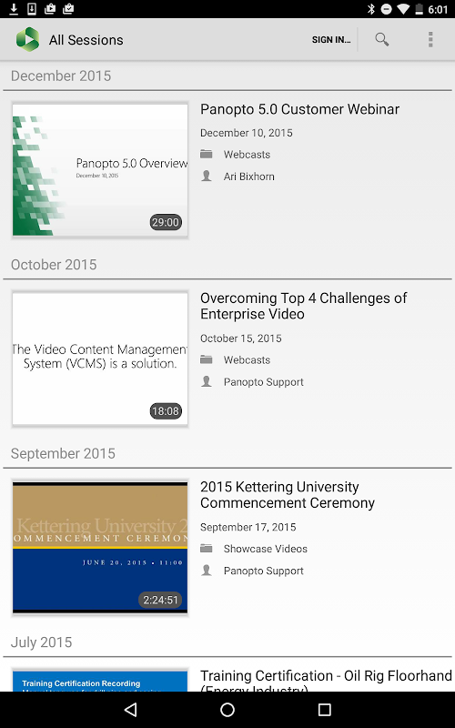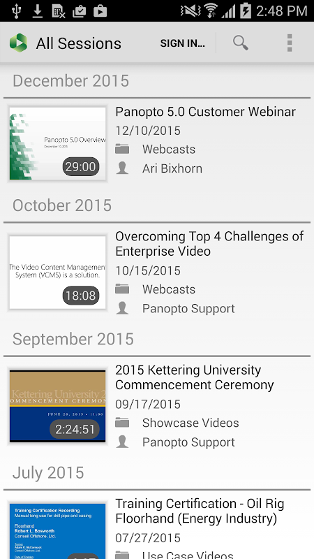 Panopto for Android lets you access all of your organization’s video content.