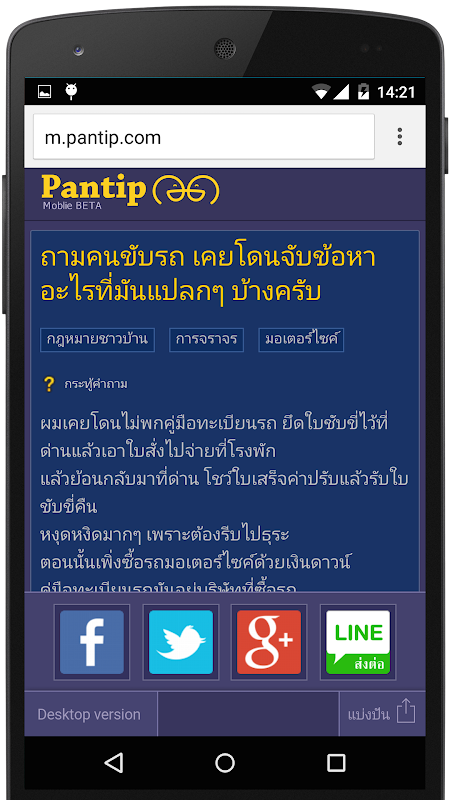 - Share ไปยัง Social Network ต่าง ๆ ไม่ว่าจะเป็น Facebook, Twitter, Google Plus, Line เป็นต้น ได้อย่างสะดวกและง่ายด้าย