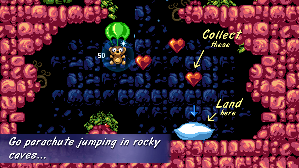 Guide Teddy as you explore the mysterious caves of Fuzzy Land.