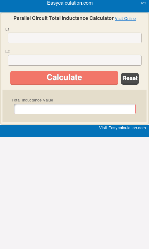 Parallel Circuit Total Inductance Calculator to find the inductance of circuit.