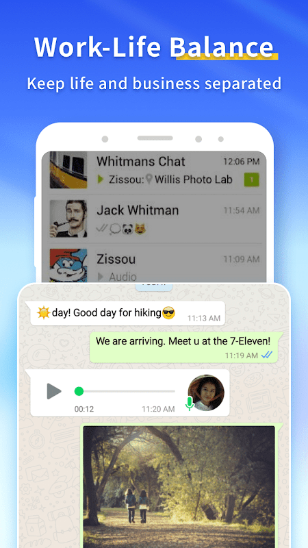 Parallel Space creates a dual space for you to run a second account of your social apps or games. In this way, you can separate your personal and business accounts apart, but keep them online on the same phone. And you no longer need to worry about missing messages from both accounts. For games, you can log into two accounts at once and have double the fun, experience points, and loots.