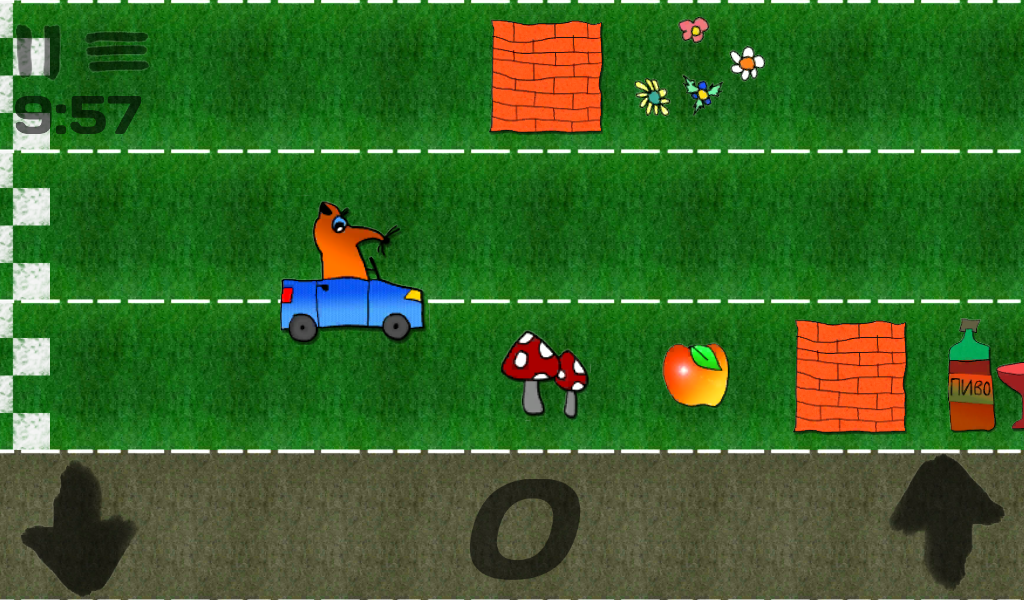At first glance, everything is simple - manage fox on a car, collect apples. But sometimes in the woods found a bottle with a rather strange contents, and no less strange inscription "beer". For some unknown reason, but after drinking the liquid starts to swing all around, the car becomes more difficult to manage, and the probability of crashing into one of the walls increases.