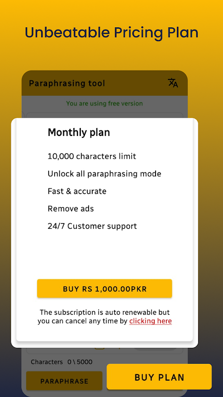 3) Freemium Tool:parafrasear believes in providing value to all users. That's why our core features are available for free. But if you need extra capabilities or want to enhance your experience, this paraphrase tool offers affordable premium options. With the premium plan, you can enjoy benefits such as priority customer support, faster processing, and more. But rest assured, whether you're a free or premium user, you will always get high-quality paraphrasing with parafrasear.