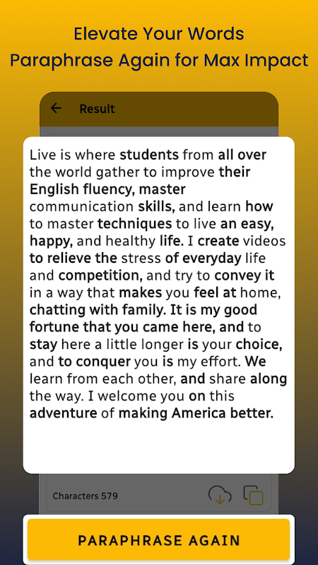 3) Click the "Paraphrase" Button: Once you have inputted your text and selected the appropriate mode, all you need to do is click the "Paraphrase" button. The app will then work its magic, presenting you with a freshly paraphrased text.