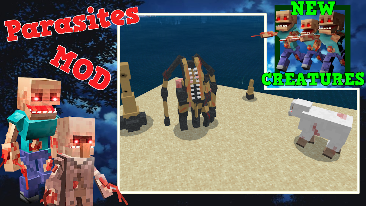 Both animals and players can be infected, if you add new creatures - parisites to the game, then you and living creatures will be in danger. The weakest new mob is a horned creature appearing in the dark, this monster after a while turns into a rupert. After transformation, this mutant will be able to infect pigs, cows, chickens, horses, villagers, traveling merchants, wolves, rabbits and sheep. Very soon, all the infected will turn into living flesh, and then transform into one of the random megamonsters, they are friendly to parasites and hostile to the player, these creatures are very strong, but if you defeat them, they drop rare and even legendary cubic items. These items will help you craft new rare weapons - bow and sword. Your world will turn into a real apocalypse, fear and a popular infection among living beings will dominate, the typical protection of armor and a sword will be powerless. If you want to harm a settlement or a city, launch infected creatures and everything will be done for you, an infection, like in a zombie apocalypse, infects anyone. Each creature is of a different size, strength, and type. There are giants and vice versa the size of a worm. The texture and skin of anyone will make the game even more realistic. Only robots and modern rocket launching gadgets will help you cope with the new threat. New crafted weapons will allow you to destroy entire crowds, but you must do a lot of feats to get them. Invite your friends and protect the biomes of your favorite game.
