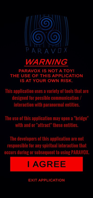The Developers of this application are not responsible for any spiritual interaction that occurs during or subsequent to using PARAVOX.