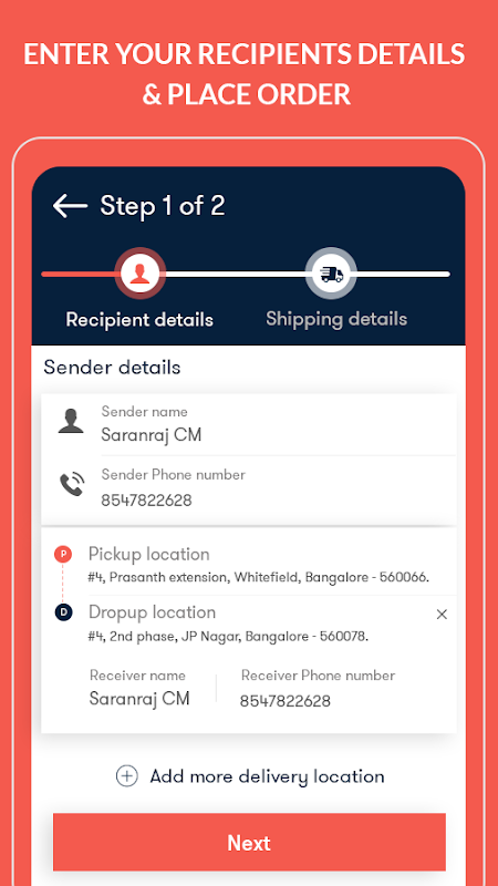 - Request the parcel delivery with from & to location