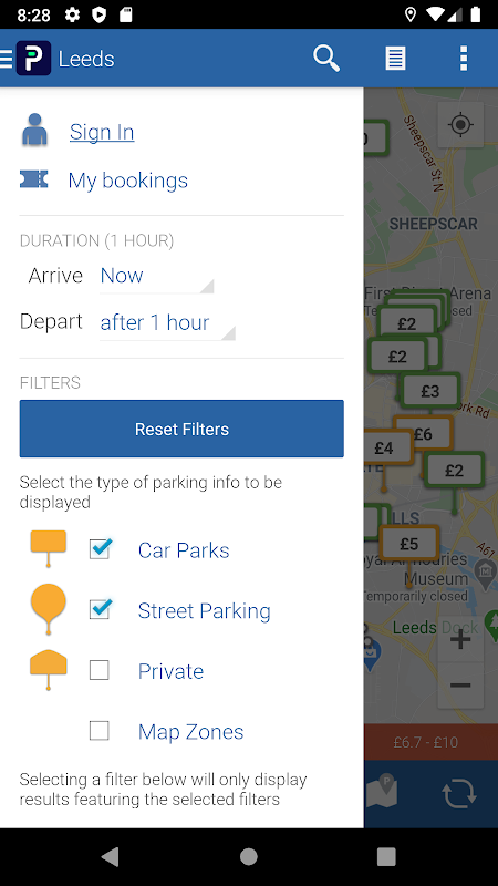 * Quickly narrow down parking choices using filters such as street parking only, free, credit cards accepted, covered, etc