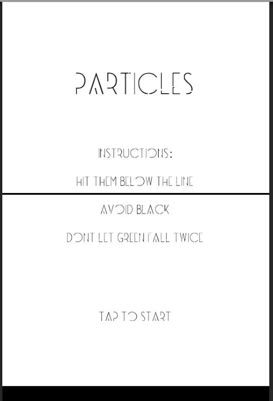 The objective in Particles is simple: swipe the falling balls below the black line and earn points. Avoid the black ball and don't let the balls fall down when they get red.