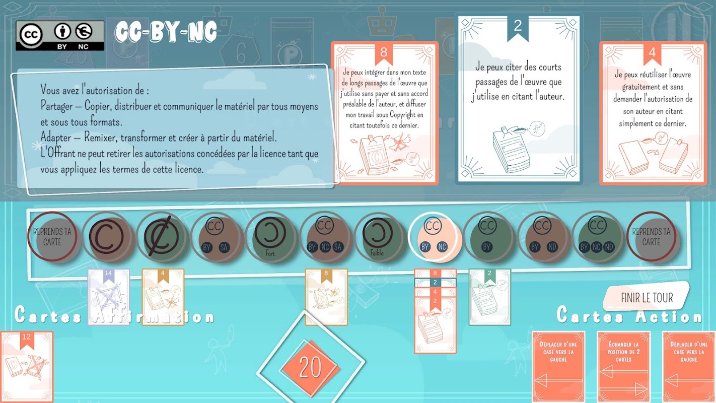 With Partyright, manipulate these different licenses on the game board and use them faster than your opponents to win the round! Play solo or with others ... and master copyright!